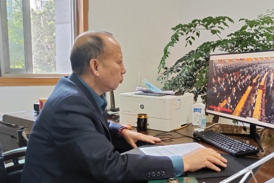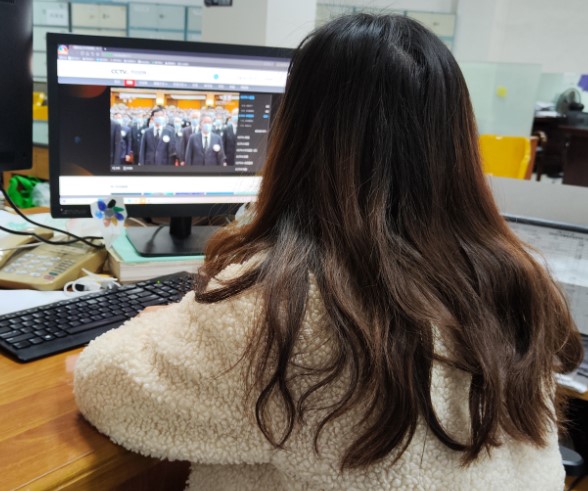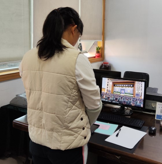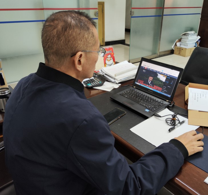 (华光公司领导及员工认真收看直播)