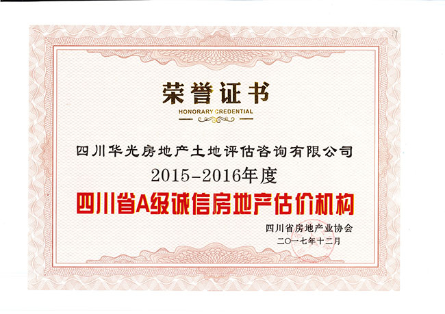 四川省A级诚信房地产估价机构证书